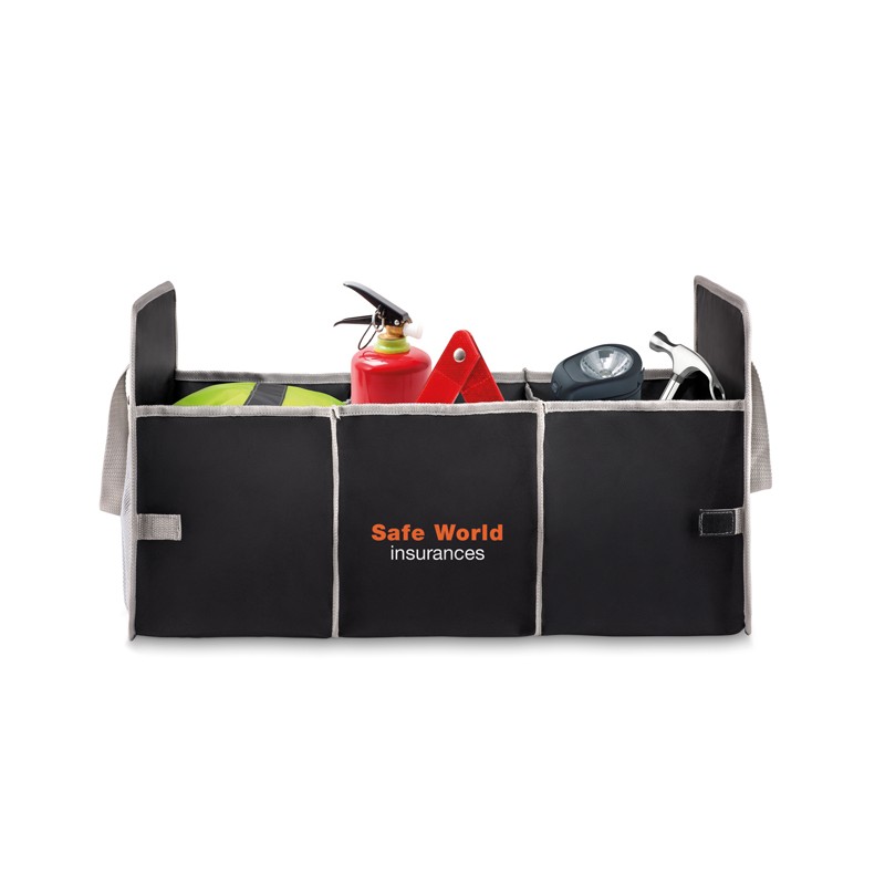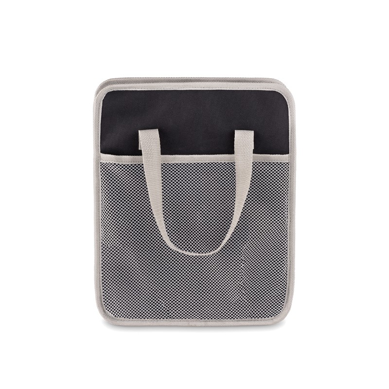 Organizador de coche plegable fabricado de poliéster 600D, con bolsillo de rejilla en el lateral. Cuando no esté en uso, puede plegarlo para un almacenamiento compacto. Además, esto hace que la conducción sea más segura, ya que evitará que los elementos posiblemente rueden bajo los pies del conductor.